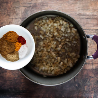 Turn the heat to medium-low. Add the beef stock, all of the meat should be just submerged - if not, add more beef stock or boiling water until the beef is just covered. Add the mixed spice pouch and curry leaves and stir. Cover and leave to simmer on medium-low heat (stirring gently once or twice) for at least half an hour, until the meat is tender but not falling apart - the timing will depend on the cut of meat used. While the meat is cooking, get your finishing touches ready. Fry the ¼ remaining sliced onion until browned and add the garam masala to it. Set aside about a teaspoon of this to garnish. Once the meat is cooked, if there is still a lot of liquid remaining, cook on medium-high uncovered until the gravy thickens. Once the curry is ready, add the fried onion-garam masala mixture, the roasted cumin, fennel to the pot and mix well and continue cooking for two more minutes. Garnish topped with fresh chopped coriander and the teaspoon of fried onion-garam masala you set aside.